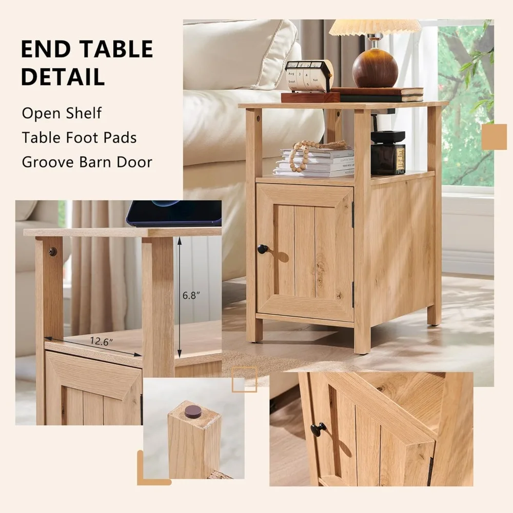 - Large Storage Capacity: Set of 2 nightstands featuring an open shelf (12.6"W x 18.5"D x 6.8"H) plus a groove barn door with a spacious interior (13" high x 15" deep) for neatly concealing books, remotes, gadgets, and other essentials. Overall per-piece dimensions are 19.7"D x 14"W x 23.6"H.