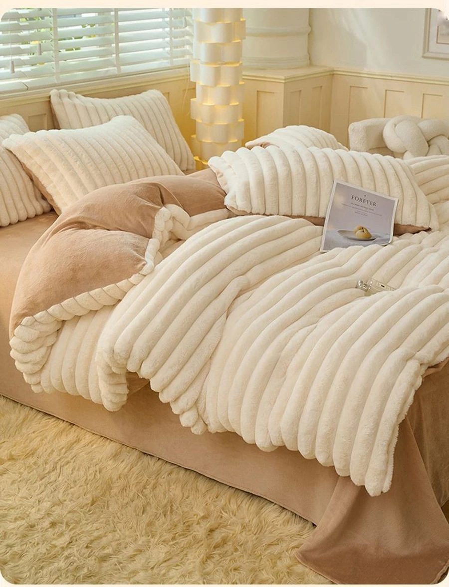 Experience luxury with this duvet cover featuring soft imitation faux rabbit fur, offering a cozy and stylish addition to your bedroom.