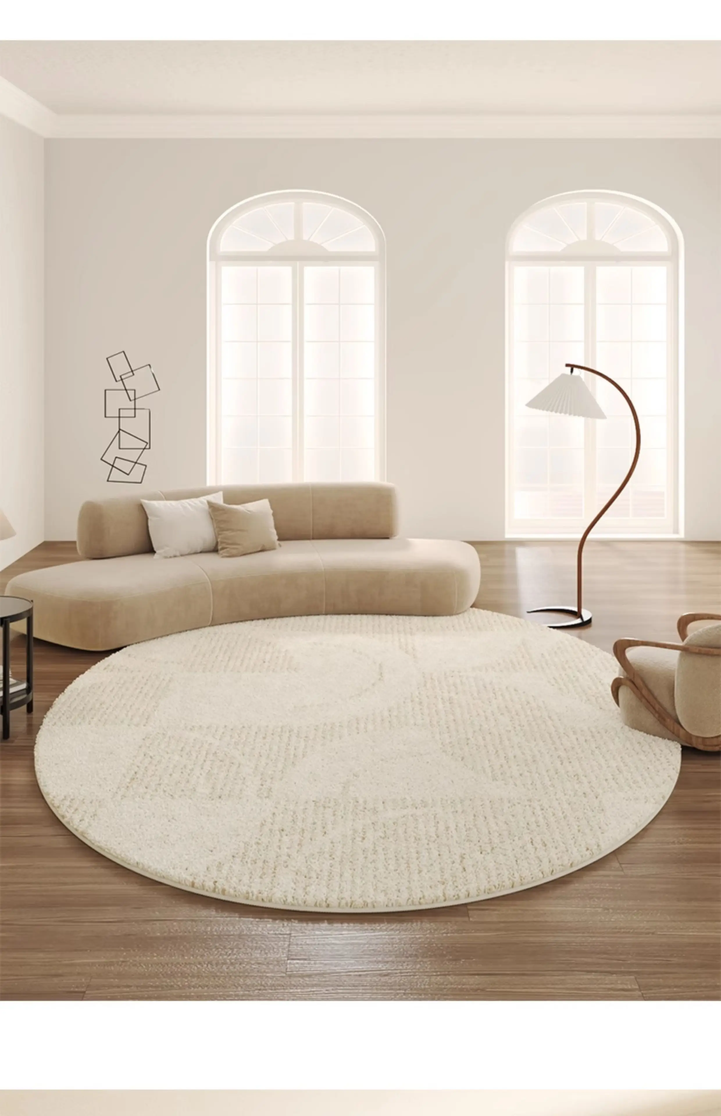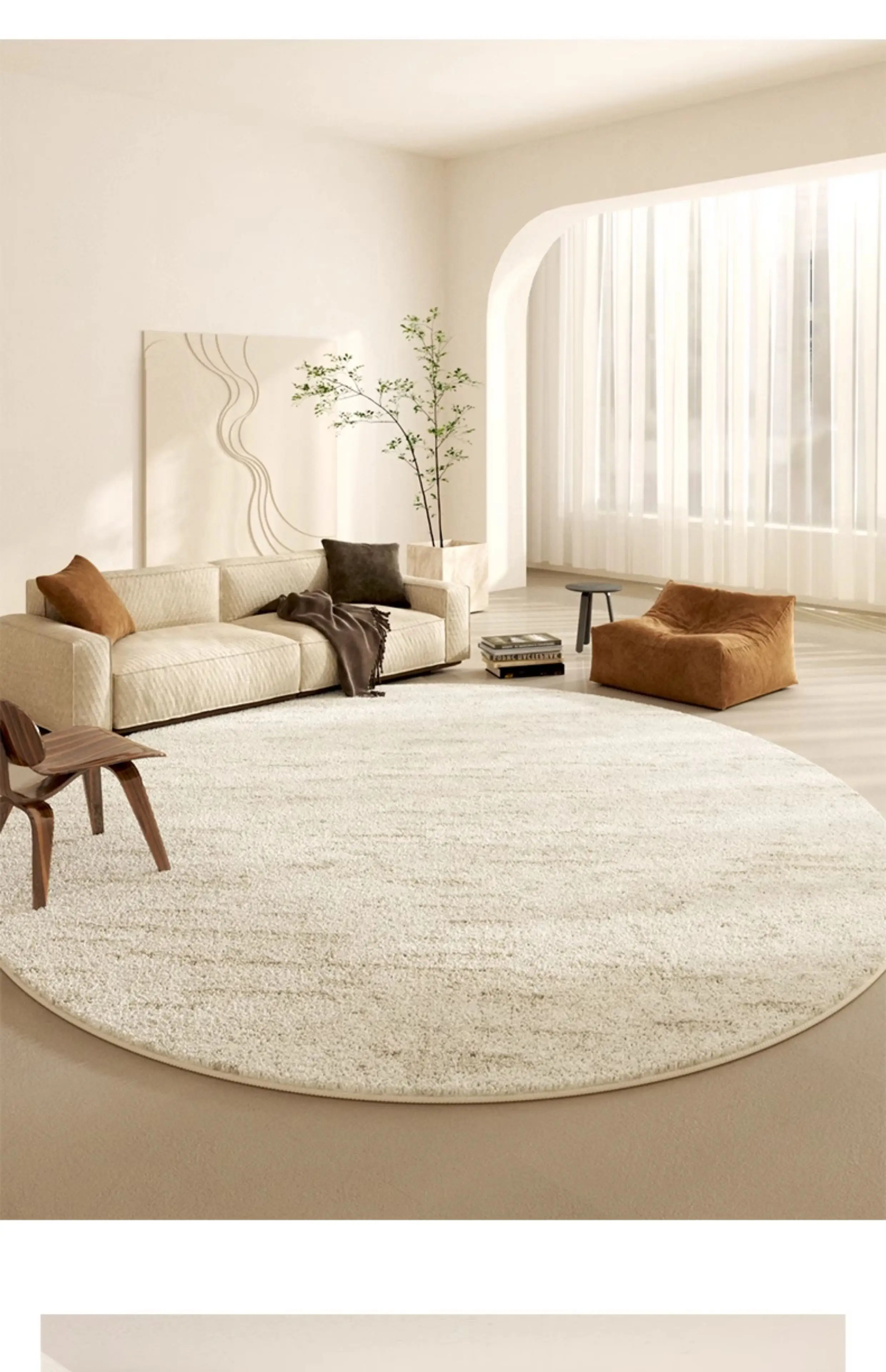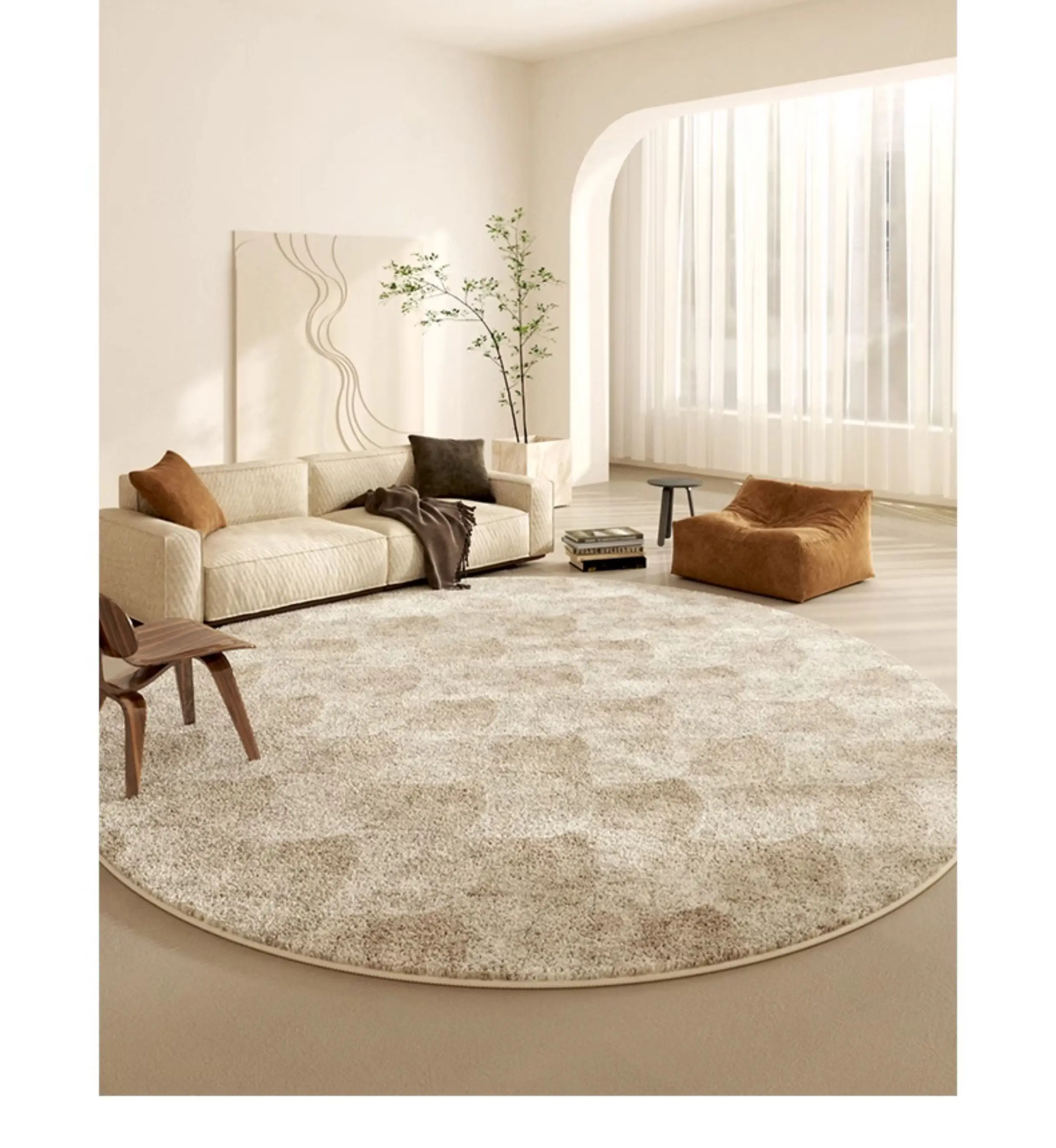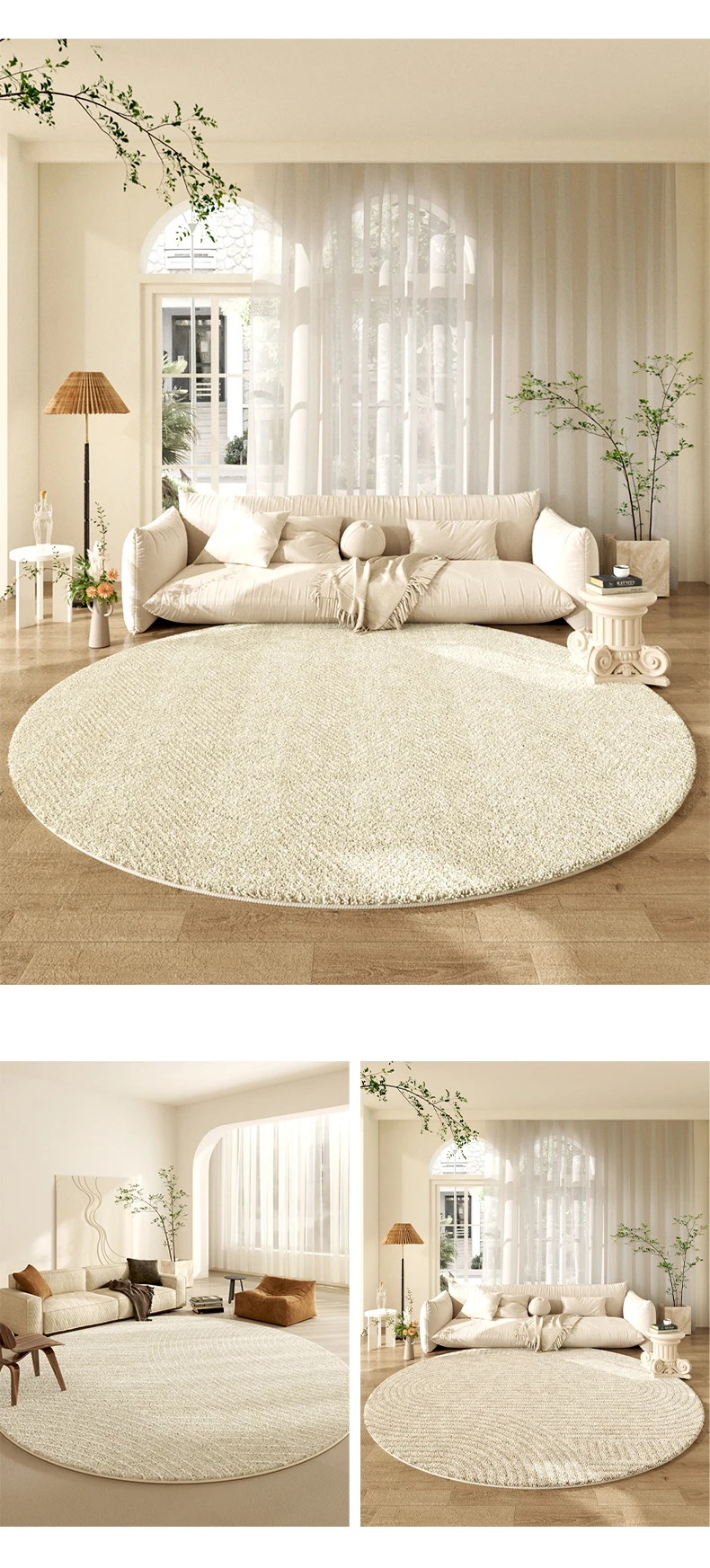 Crème Halo Rug wraps your space in softness and light. Its round form and plush cream texture create a cozy, elegant focal point—perfect for living rooms and bedrooms that embrace calm, light-luxury comfort.