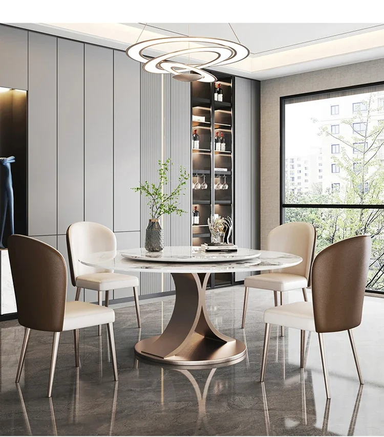 Gather around this stunning white marble dining table and create moments that matter. The SILORA's pristine marble surface becomes a canvas for your most cherished memories—intimate dinners, laughter-filled celebrations, and quiet conversations that nourish the soul. The integrated turntable transforms the practical into the poetic, effortlessly bringing every dish, every face, every shared glance within reach. More than furniture, this is where families reconnect, where stories unfold, and where the simple act of breaking bread together becomes sacred. The cool elegance of white marble whispers timeless sophistication while inviting warmth and togetherness into your home's heart.