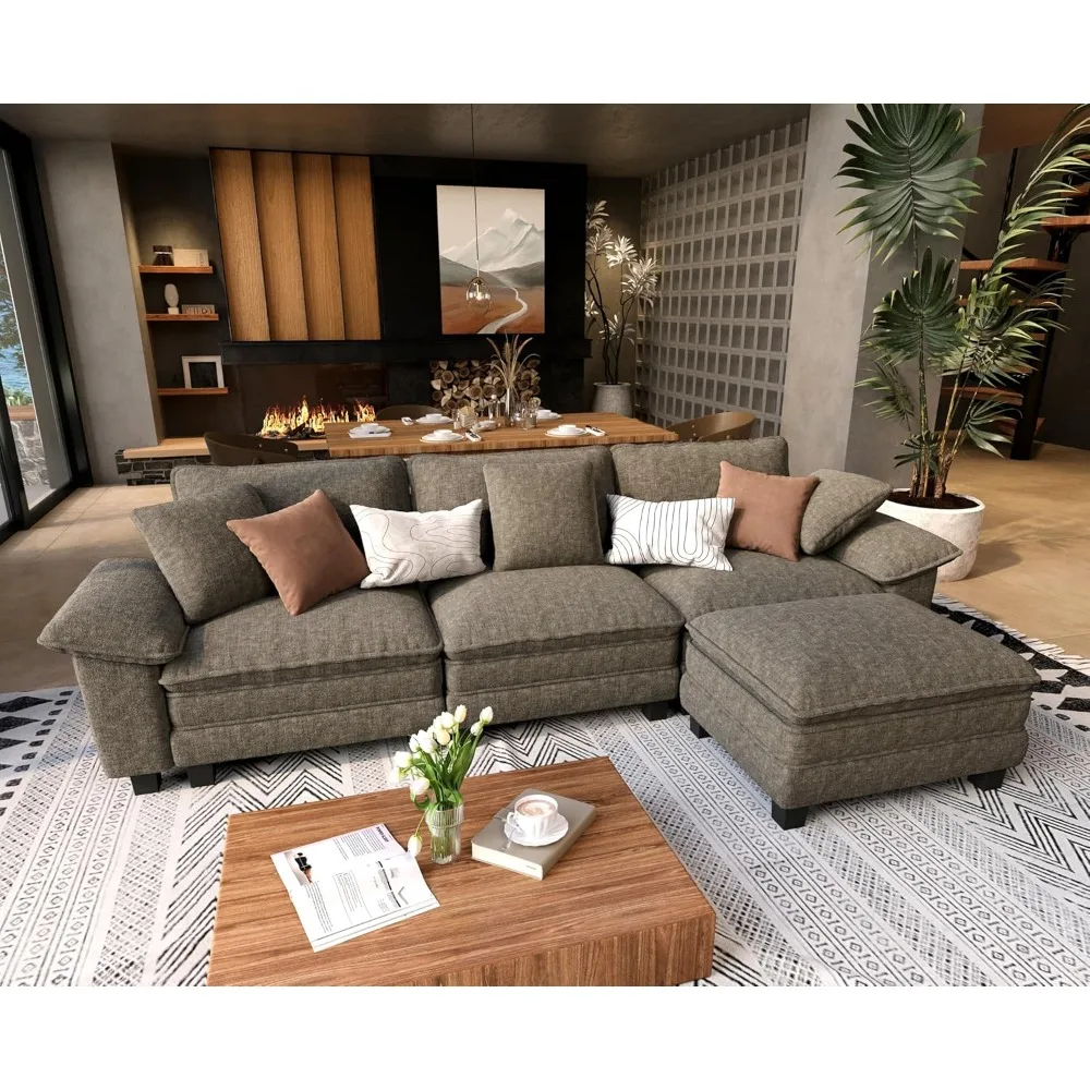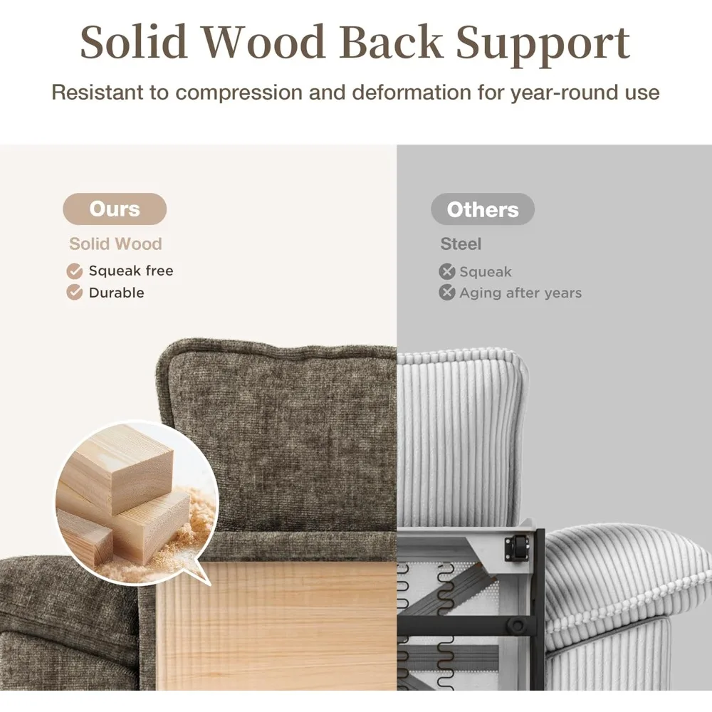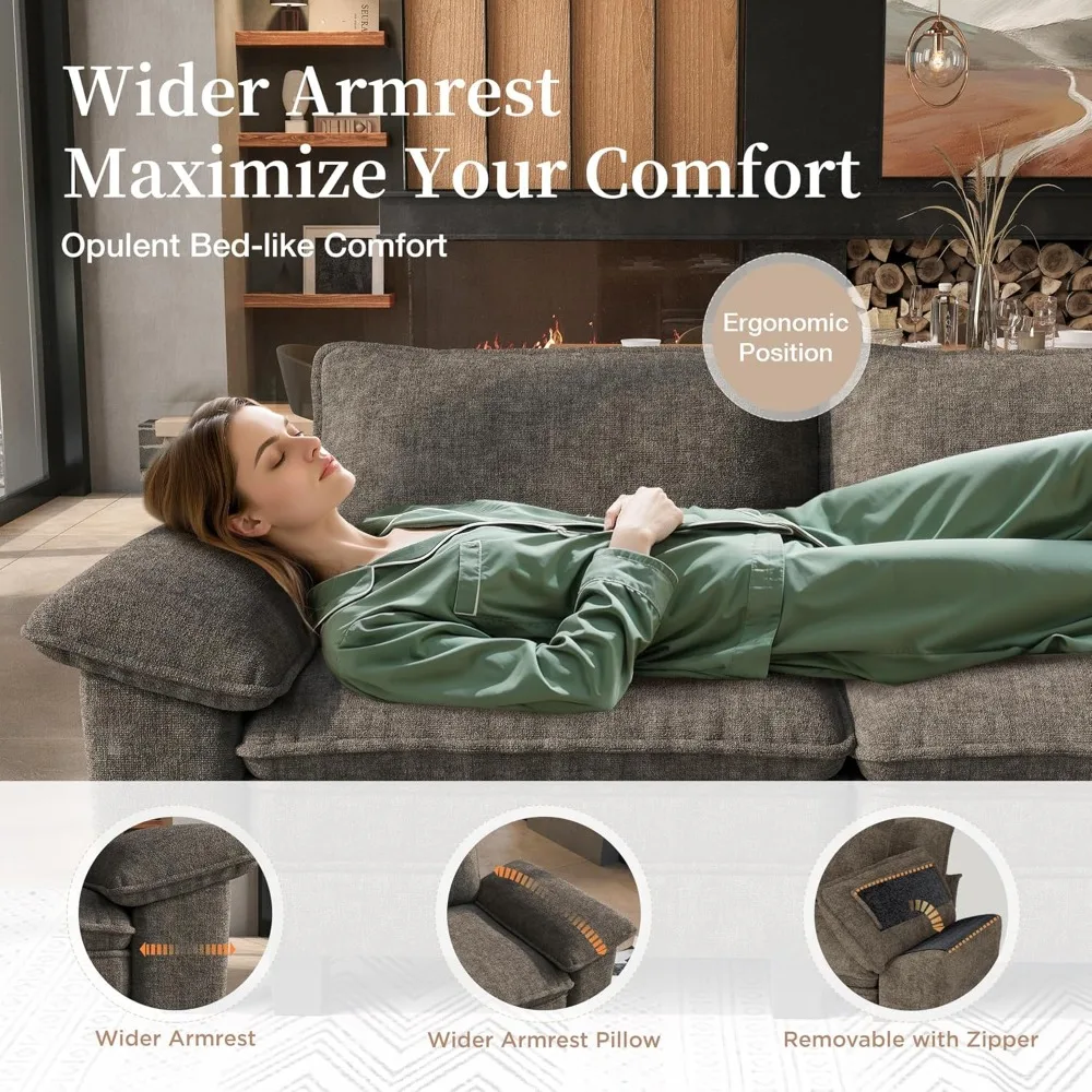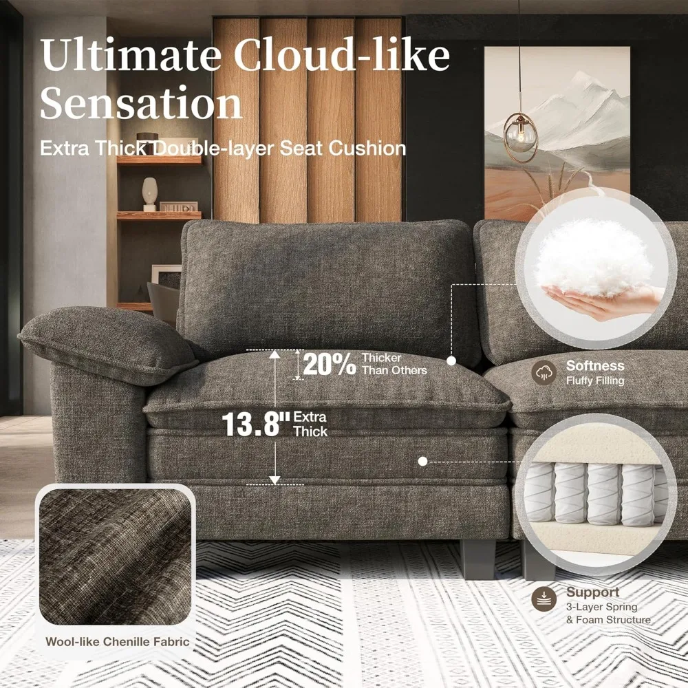 - WOOL-LIKE CHENILLE FABRIC: This cloud sectional sofa is covered by premium wool-like chenille fabric that is luxuriously soft yet durable. It mimics wool's rich texture without the fuss, offers cloud-like comfort, perfect for households that want both elegance and everyday practicality