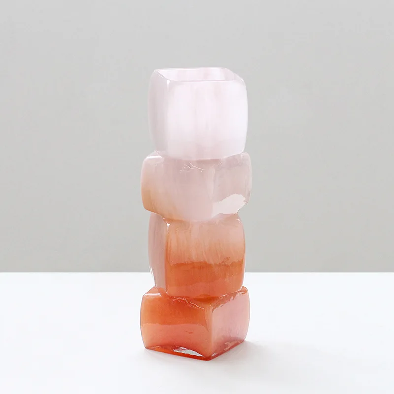 Creative Gradient Sunset Red Geometric Square Vase Glass Vase Stack Stones Terrarium Home Decoration Accessories
