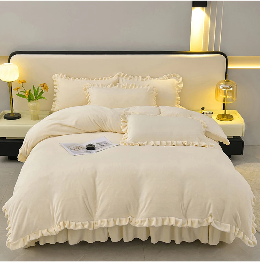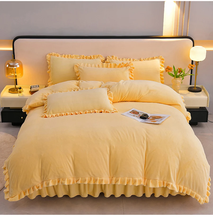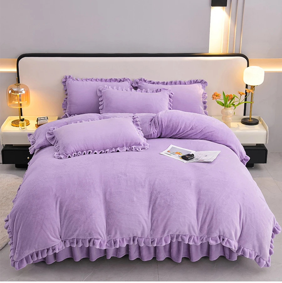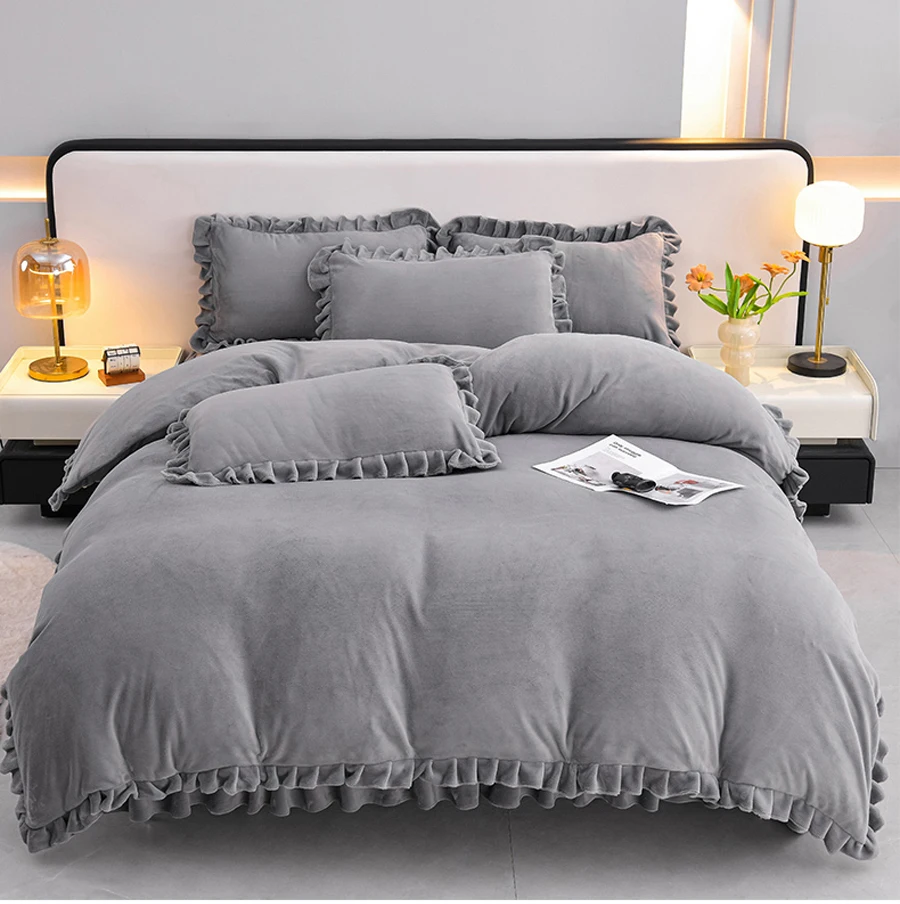 Featuring a plain dyed pattern and lotus leaf edge, this duvet cover adds a touch of elegance to your bedroom decor.